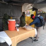 Los militares instaron una mesa en estos puntos, en los cuales empezaron a repartir café en vasos de unicel y piezas de pan, acciones que se efectúan en favor de la comunidad, esto marcado en el Plan DN-III que se activa ante desestres naturales o como en esta ocasión, registrándose bajas temperaturas