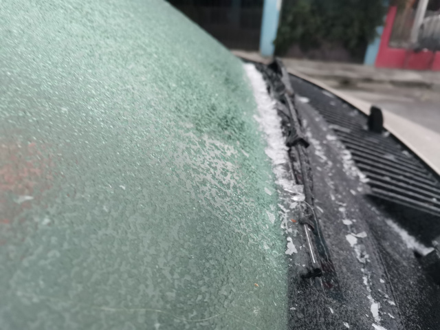 En la mañana, la capa de hielo era más visible en los vehículos, los cuales estaban cubiertos en su totalidad; de igual forma algunas fachadas de viviendas se encontraban con escurrimientos de agua que se habían congelado al estar a menos 11 grados.