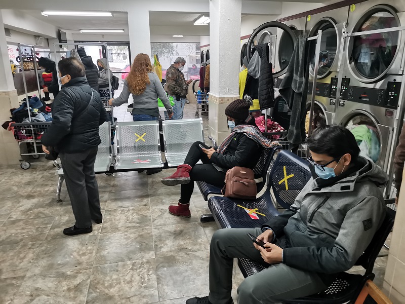 Los ciudadanos aprovecharon para llevar todas sus ropas a lavar, lo que en algunas lavanderías hubiera fila de espera para utilizar las lavadoras y secadoras, al ser un servicio esencial ante la lluvia y el frío que se registraba.