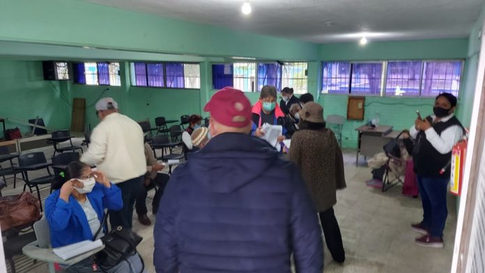 Poco a poco los adultos mayores ingresaban a los diversos puntos donde se les aplicaría la vacuna contra el Coronavirus, todos asistidos por el personal de la secretaría de bienestar social del gobierno de México.