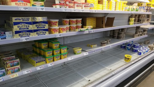 Productos como leche y huevo son los que más demanda tienen, incluso en algunos establecimientos ya no se pueden encontrar, debido al desabasto que se ha generado durante esta semana.