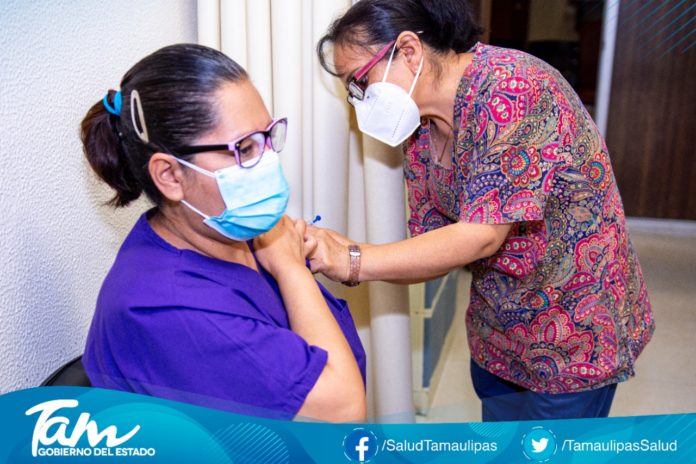 CIUDAD VICTORIA, Tamaulipas.-Para dar continuidad al Plan Estatal de Vacunación contra COVID-19, el gobierno de Tamaulipas continúa aplicando las dosis correspondientes al personal médico de primera y segunda línea de atención a la pandemia en unidades hospitalarias.