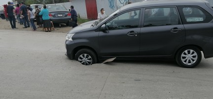 Esta imagen es de la calle Benito Juárez de la colonia Alejandro Briones del sector conocido como el Chocolate en Altamira donde una alcantarilla destapada ocasionó un severo daño a este vehículo.