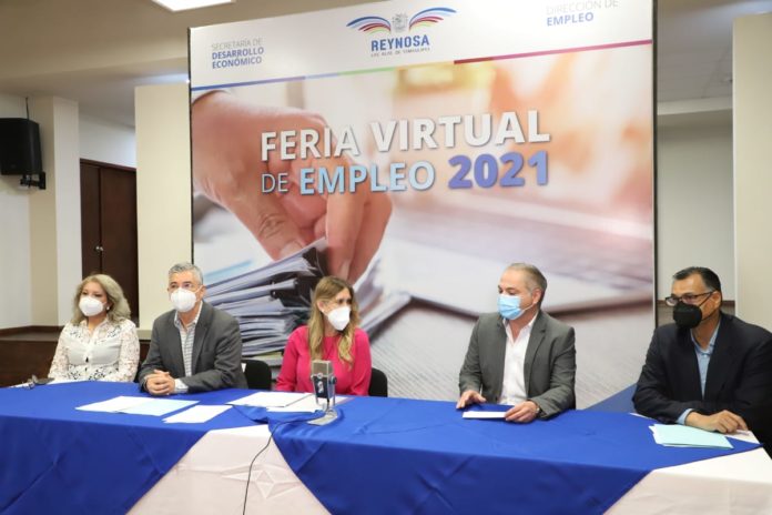 REYNOSA, TAM.- La Feria Virtual de Empleo 2021, de la Secretaría de Desarrollo Económico, fue inaugurada por la Presidente Municipal, “reconozco el compromiso y valoro el apoyo de empresarios, gerentes de recursos humanos, oficinas de reclutamiento y cámaras empresariales por trabajar unidos en la búsqueda de oportunidades laborales”, declaró.