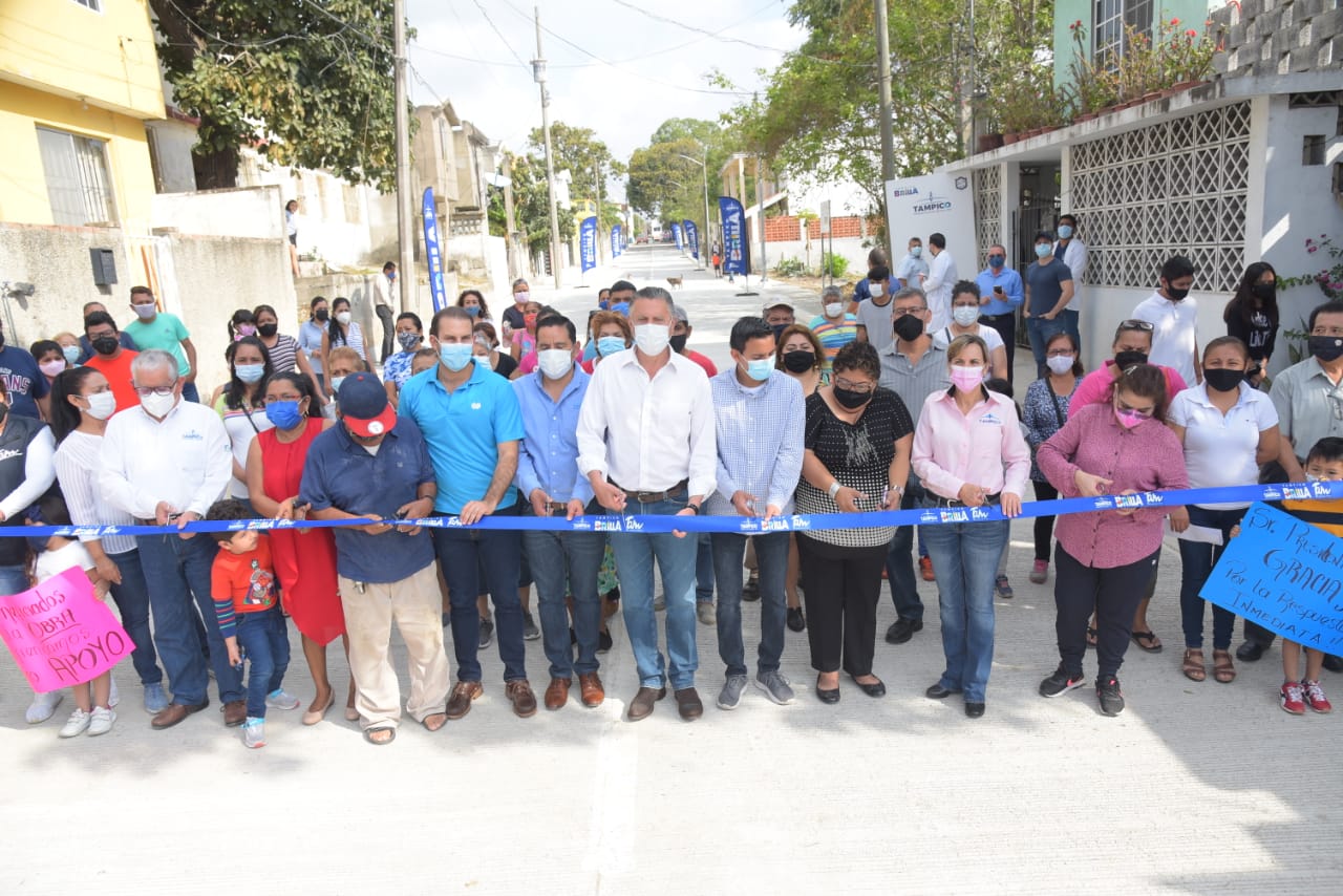 Tampico, Tamaulipas.-Mediante una inversión superior a los dos millones de pesos, el Presidente Municipal Chucho Nader inauguró este día, la pavimentación a base de concreto hidráulico y reposición hidrosanitaria de la calle Privada La Rivera en la colonia Niños Héroes, la cual ampliará el circuito vial de este sector y brindará una mejor movilidad a los vecinos de la zona.