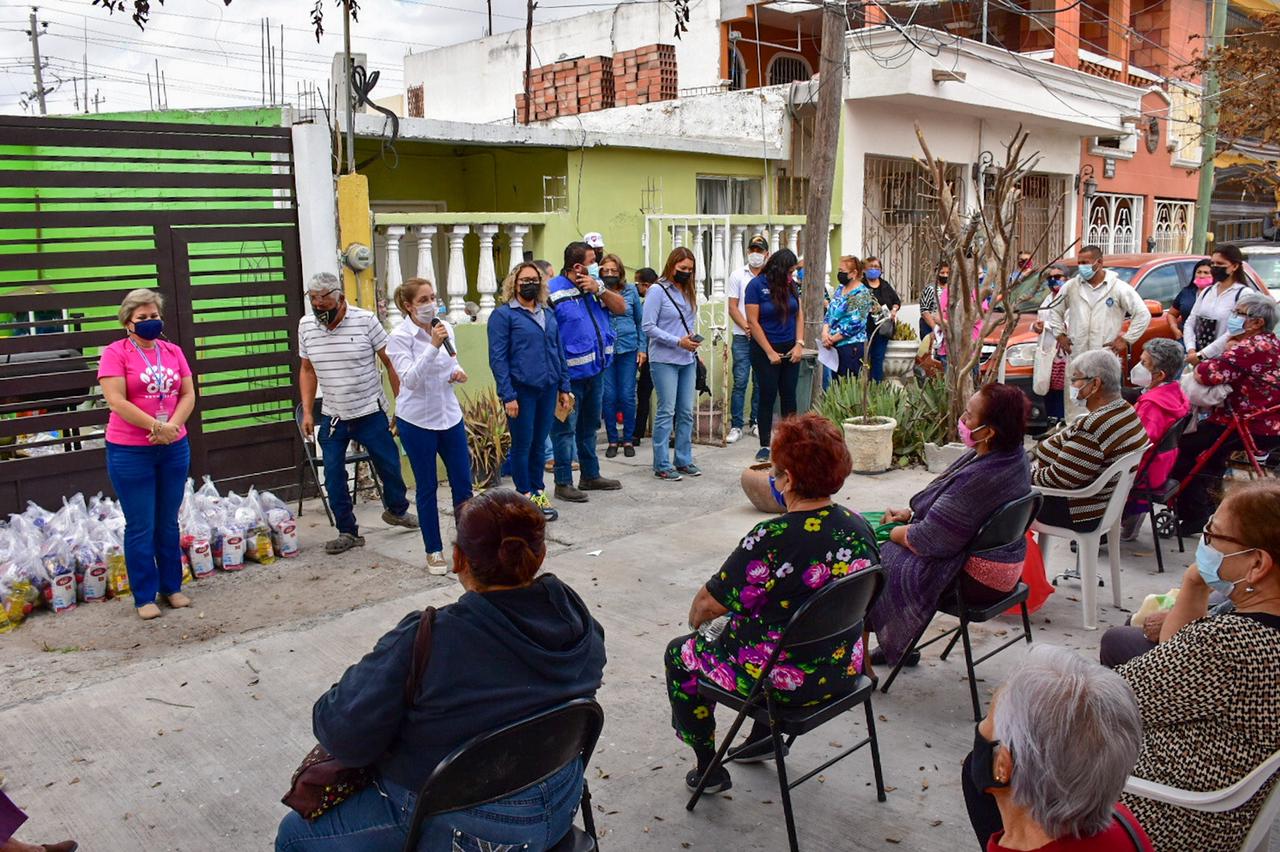 En ambas colonias, se benefició con productos de la canasta básica y cubrebocas a los Adultos Mayores que integran grupos de la comunidad.