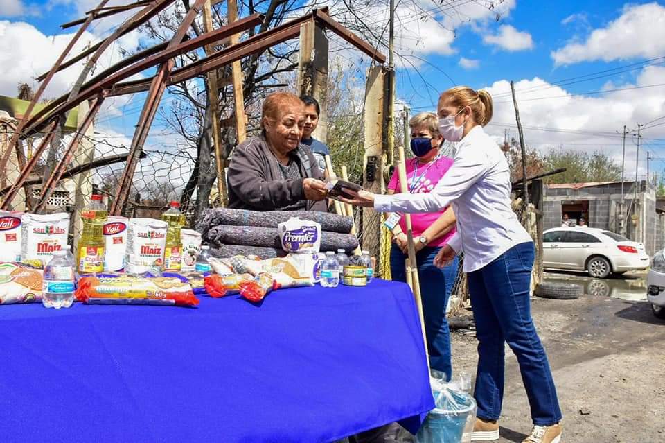 La señora Carmelita Márquez, quien perdió su casa a consecuencia de un incendio, fue visitada por el personal del DIF Reynosa, con el fin de hacerle entrega de productos alimenticios y artículos de limpieza.