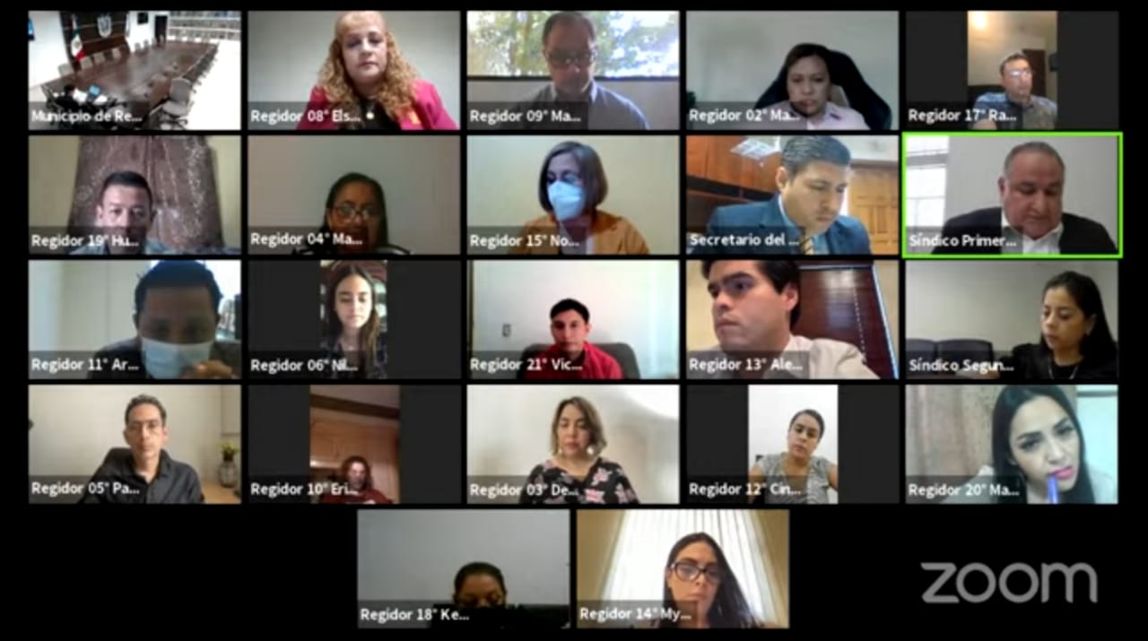 Para llevar a cabo la Sesión, el jueves 18 de marzo, se aprobó la presencia, en la conexión virtual, de la Secretaría de Finanzas y Tesorería del R. Ayuntamiento, C. P. Esmeralda Chimal Navarrete.