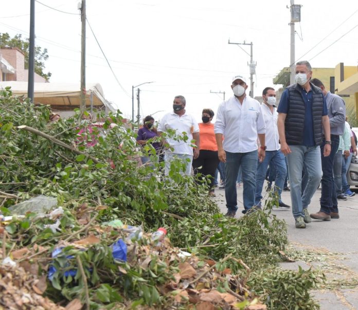 Tampico, Tamaulipas.-Al frente de más de 20 cuadrillas de trabajadores del área de servicios públicos, el Presidente municipal Chucho Nader encabezó este sábado una nueva jornada de limpieza en las colonias Las Violetas, Tancol 33 y Colinas de San Gerardo en el marco del programa “Tampico Brilla”.