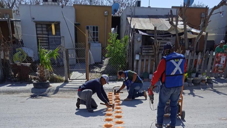REYNOSA, TAM.- Con el objetivo de ofrecer mejor seguridad a los peatones, el Gobierno Municipal instaló, en fecha reciente, boyas de tráfico en diversas calles del fraccionamiento Hacienda Las Bugambilias.