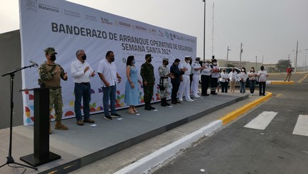 Matamoros, Tamaulipas.-Durante este fin de semana autoridades de las tres órdenes de gobierno pusieron en marcha el operativo de seguridad Semana Santa 2021, mismo que fue inaugurado con el banderazo de salida en el acceso de la Playa Bagdad.