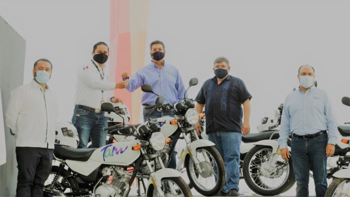 El Gobernador Francisco García Cabeza de Vaca entregó este martes un paquete de motocicletas para mejorar los servicios de entrega a domicilio del sector restaurantero en diversos municipios de Tamaulipas, a través de la segunda etapa del programa Directo a Domicilio Tam, mediante el cual se fortalecen las actividades de las MiPyMEs restauranteras, a fin de conservar los empleos que generan en la entidad.