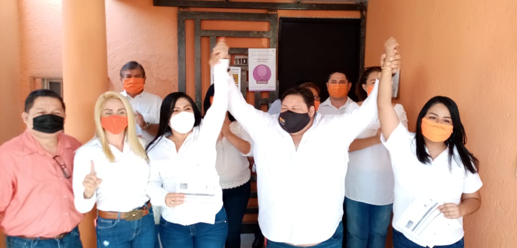 Acompañada por su suplente, Jessica Piña Torres, integrantes de la planilla de Síndicos y Regidores, así como del coordinador municipal del partido naranja, Mauro Reyes Cobos, se entregó la solicitud de registro correspondiente.