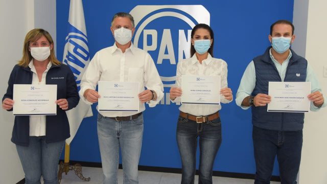 Junto a él, los demás aspirantes de la fórmula panista Rosa González Azcárraga, Mon Marón y Nora Gómez recibieron por igual sus constancias como candidatos a la Diputación Federal por el octavo distrito y a las diputaciones locales por los distritos 21 y 22, respectivamente.