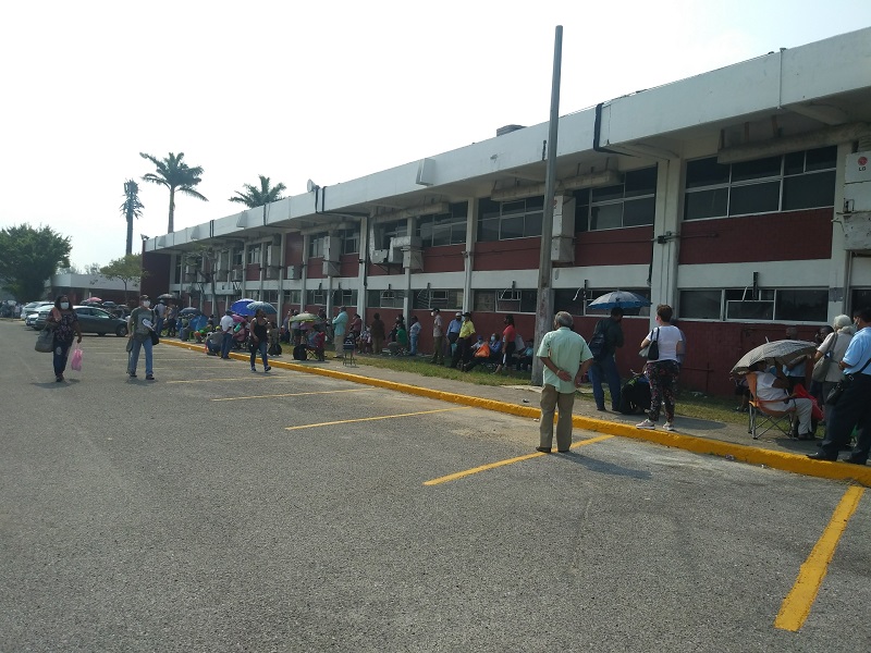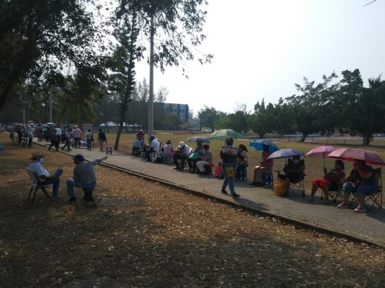 Cabe hacer mención que ayer se inmunizaron 2600 abuelitos en la UAT con la Pfizer y concluyeron después de las 7 de la noche; y hoy se entregaron más de 2 mil fichas, por lo que en el interior de esa máxima casa de estudios la fila era larga, casi llegaba a la facultad de Arquitectura, pero en esta ocasión la mayoría de la gente además de sus banquitos para no cansarse tanto en la espera llevaron sus sombrillas para protegerse de los intensos rayos del sol.