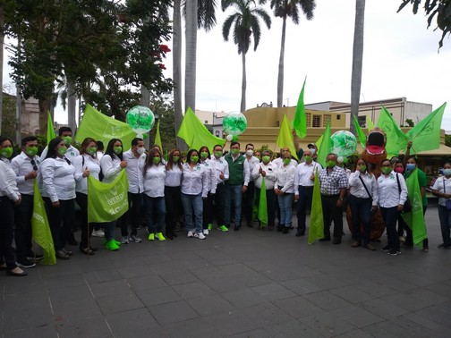 Tampico, Tamaulipas.-En la plaza de Armas arrancaron hoy su campaña política los abanderados del partido Verde Ecologista de México a la presidencia municipal y diputados locales.