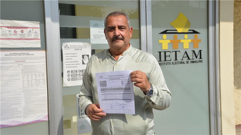 Aunque su nombre no aparecerá en las boletas electorales del 6 de junio porque en lugar de reunir las 7 mil firmas que le pidió el IETAM para poder registrarlo como candidato independiente sólo consiguió 600, aún así anda pidiendo el voto a través de las redes sociales (Facebook).