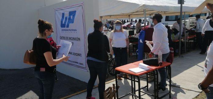 Altamira, Tamaulipas.-. Desde las 4 de la tarde de este lunes comenzaron a formarse los profesores de Aldama y Ciudad Madero afuera de las instalaicones de la universidad politécnica de Altamira, una de las dos sedes para la aplicación de la vacuna contra el coronaviurs.