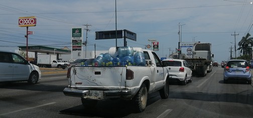 Altamira, Tamaulipas.-También en Altamira en las últimas horas las compras de pánico de agua en botellón ha generado la escases del vital líquido y el cierre de negocios relacionados con este giro