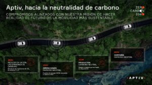 También anuncia planes para garantizar que todas las operaciones de Aptiv, realizadas en 44 países, entre ellos México, utilicen al 100% energía renovable para el año 2030; y para lograr la neutralidad de emisiones de carbono para el año 2040, Aptiv planea mantener la certificación anual ISO140001, de las 124 plantas de manufactura que tiene en el mundo.