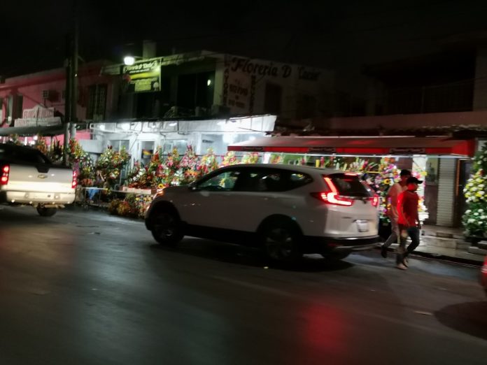 Matamoros, Tamaulipas.- Gran movilidad comercial se pudo observar durante la noche de este 9 de mayo, previo a la celebración del Día de las Madres en esta ciudad fronteriza.