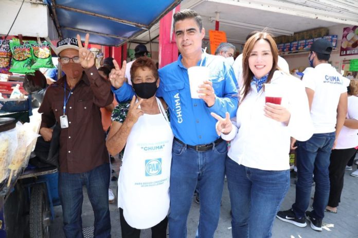 Reynosa, Tamp.-El candidato del PAN a la Presidencia Municipal, Jesús Ma. Moreno, Chuma, visitó esta mañana una de las calles más tradicionales en la historia de Reynosa, la peatonal Hidalgo, en donde tuvo la oportunidad de compartir sus propuestas con el comercio formal e informal, uno de los sectores más afectados por la pandemia del Covid.