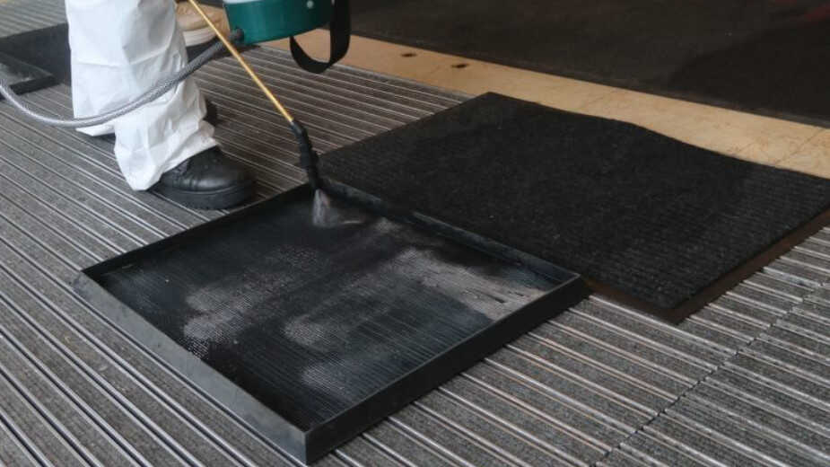 Otro de los protocolos con poca efectividad y más extendido han los tapetes impregnados de alcohol y otros desinfectantes en entradas para neutralizar el virus en las suelas de los zapatos.