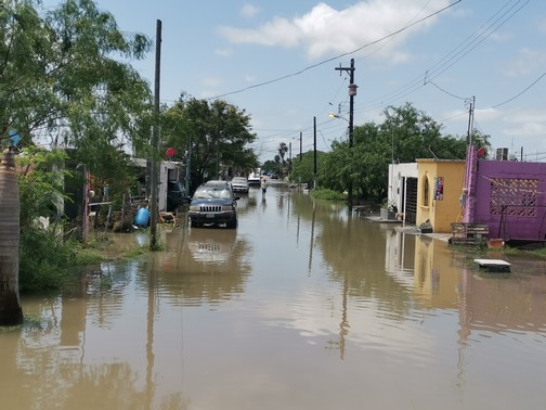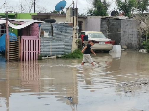 Comentó que toda el agua que se ve en las calles y dentro de las casas, se debe a que el dren que estaban haciendo se llenó y el agua pluvial que corre de otras colonias que están en alto baja por la avenida Camino Real y llega hasta este punto.