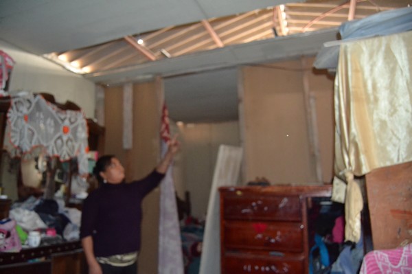 “Eran como las diez y media de la noche, y solo vi que todo comenzó a tronar seguido de un fuerte zumbido, y cómo se volaban las láminas de mi techo…sentí mucho miedo y terror por lo que nos metimos en el baño y ahí nos quedamos hasta que pasó la tormenta”, explica aún temerosa esta mujer originaria de San Luis Potosí.