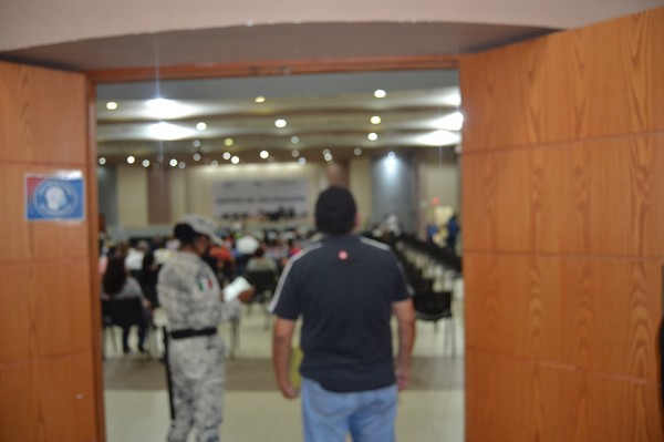 En orden y sin aglomeraciones, uno a uno fueron entregando sus documentos a personal del Imss de Bienestar Social en la sala de acceso al recinto principal, en donde un sillerÍo para aproximadamente 400 personas se había montado para este fin, al igual que en los estacionamientos de Expomex y en el Polyfórum, toda vez que el Centro Cultural fue descartado por haber sufrido daños por la tromba del lunes de esta semana.