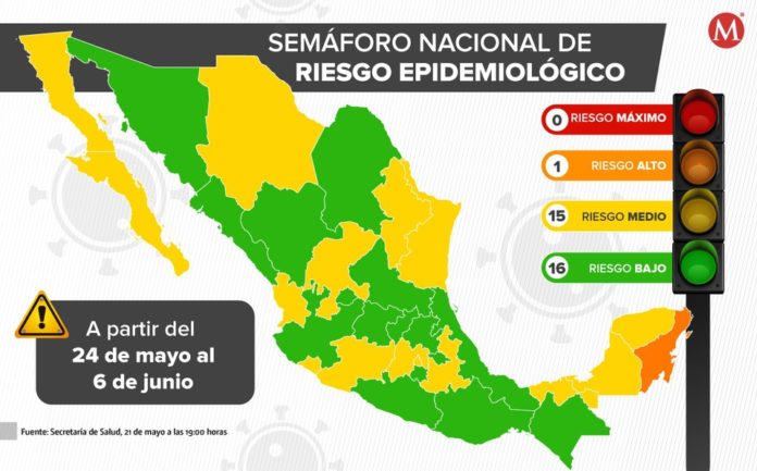 De acuerdo a la actualización del semáforo epidemiológico por primera vez la mitad de los estados del país estarán en color verde, es decir, en bajo riesgo de contagios.