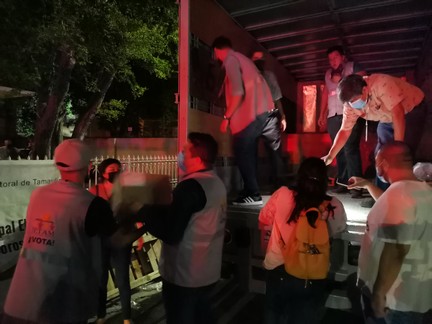 Matamoros, Tamaulipas.-La noche de este sábado llegaron las boletas electorales para elegir a alcaldes el próximo 6 de junio al Consejo Municipal del Instituto Electoral de Tamaulipas.