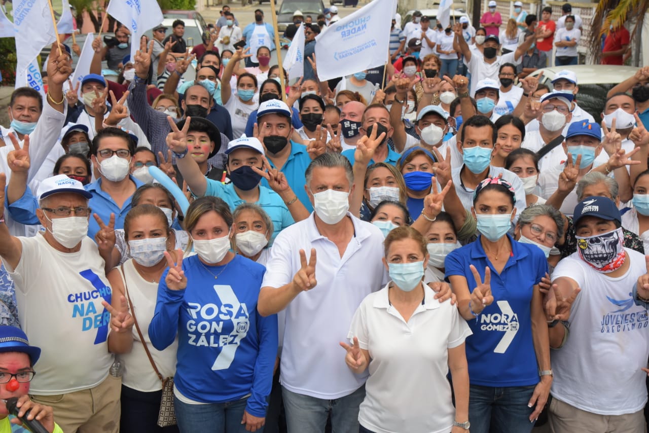 “Los invito a votar por los candidatos del PAN, votar por la seguridad, por el bienestar y por la continuidad de los proyectos y las obras que garantizarán empleo, seguridad, mejor calidad de vida y un mejor futuro para todos; este domingo seis de junio votaremos por Rosa González para la Diputación Federal; por Mon Marón y Nora Gómez para el Congreso local y por Chucho Nader para la alcaldía de Tampico”, subrayó.