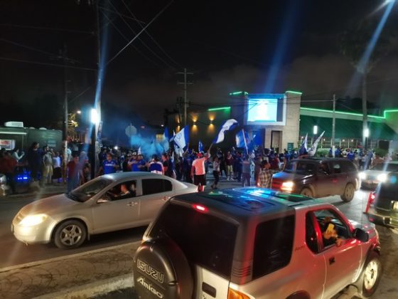 Después de las 11:30 de la noche y al calor del alcohol, los jóvenes y adultos empezaron a subir la intensidad de la celebración, reuniéndose enfrente de un antro conocido a glorificar el triunfo y a sarandear los vehículos que pasaban por esta zona.