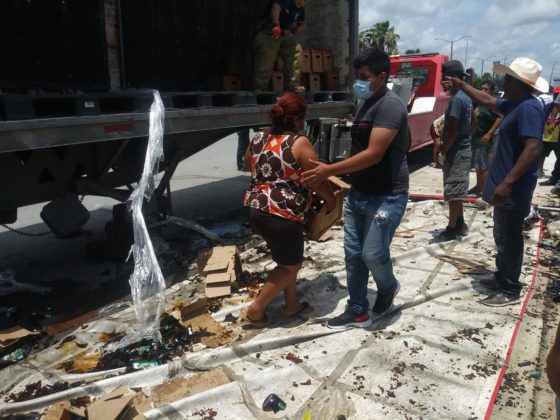 Desesperados por casi tres horas viendo como personal de Protección Civil Municipal y del Cuerpo de Bomberos, limpiaban la zona de los vidrios de estos envases, gritaban que los dejaran pasar porque querían llevarse las cajas de cervezas.