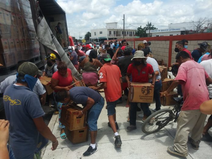 Esperan 3 horas para hacer rapiña de cerveza en la Cantinflas