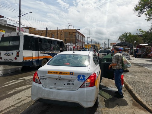 En la zona Centro se pudo ver personas que viven al sur poniente de Matamoros, esperando el servicio de taxis que llega hasta los sectores en donde viven.