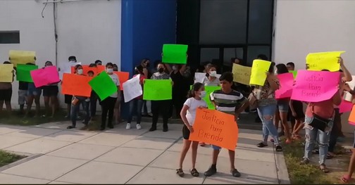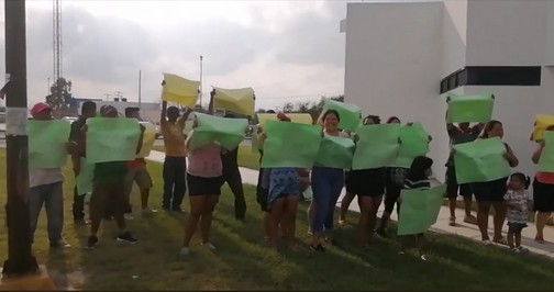 Las decenas de personas llegaron con cartulinas y pancartas a este inmueble a protestar ante el rumor de que iban a dejar en libertad al presunto responsable del accidente, Edwart Noyola.