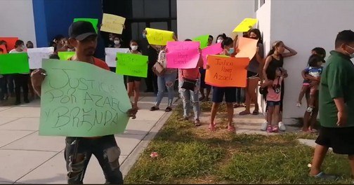 Matamoros, Tamaulipas.- La tarde de este lunes familiares y amigos del vigilante de Fajitas House, Josué Azael, quien falleciera a causa de las lesiones que tuvo al ser atropellado por un residente de Brownsville, Texas, se manifestaron afuera de las instalaciones de la Fiscalía General de Justicia de Tamaulipas, para exigir justicia ante el fatal hecho.