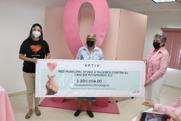 “A través de la Red Municipal de Ayuda a Mujeres Contra el Cáncer Matamoros, Aptiv contribuyó al tratamiento médico de 65 mujeres del estado de Tamaulipas que padecen cáncer de mama y cervicouterino y que requieren de apoyo económico para medicamentos”, explicó la directiva.