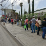 Los primeros adultos mayores llegaron a las 4 de la mañana en búsqueda de ser los primeros en la fila de espera que llegó un momento que rebasaba el kilómetro en las primeras horas de la mañana.