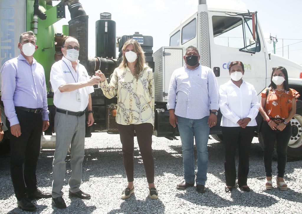REYNOSA, TAM.- La Presidente Municipal, Maki Esther Ortiz Domínguez, entregó este dia viernes 2 de julio, un camión Vactor a la COMAPA, donado por el Mayor de McAllen, Jim Darling, unidad que reforzará las labores de mantenimiento del sistema de drenaje sanitario de Reynosa, acelerando la atención a los usuarios.