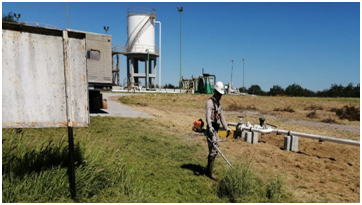 Los trabajos efectuados en las Estaciones de Recolección de Compresión de Gas, Dragón 1, Pamorana 1, Orozco 1 y Sultán 2, consistieron en limpieza y retiro de maleza en diversas áreas de la instalación, aplicando en forma correcta en cada una de las acciones la política de Seguridad, Salud en el Trabajo y Protección Ambiental y Desarrollo Sustentable(SSPADC).