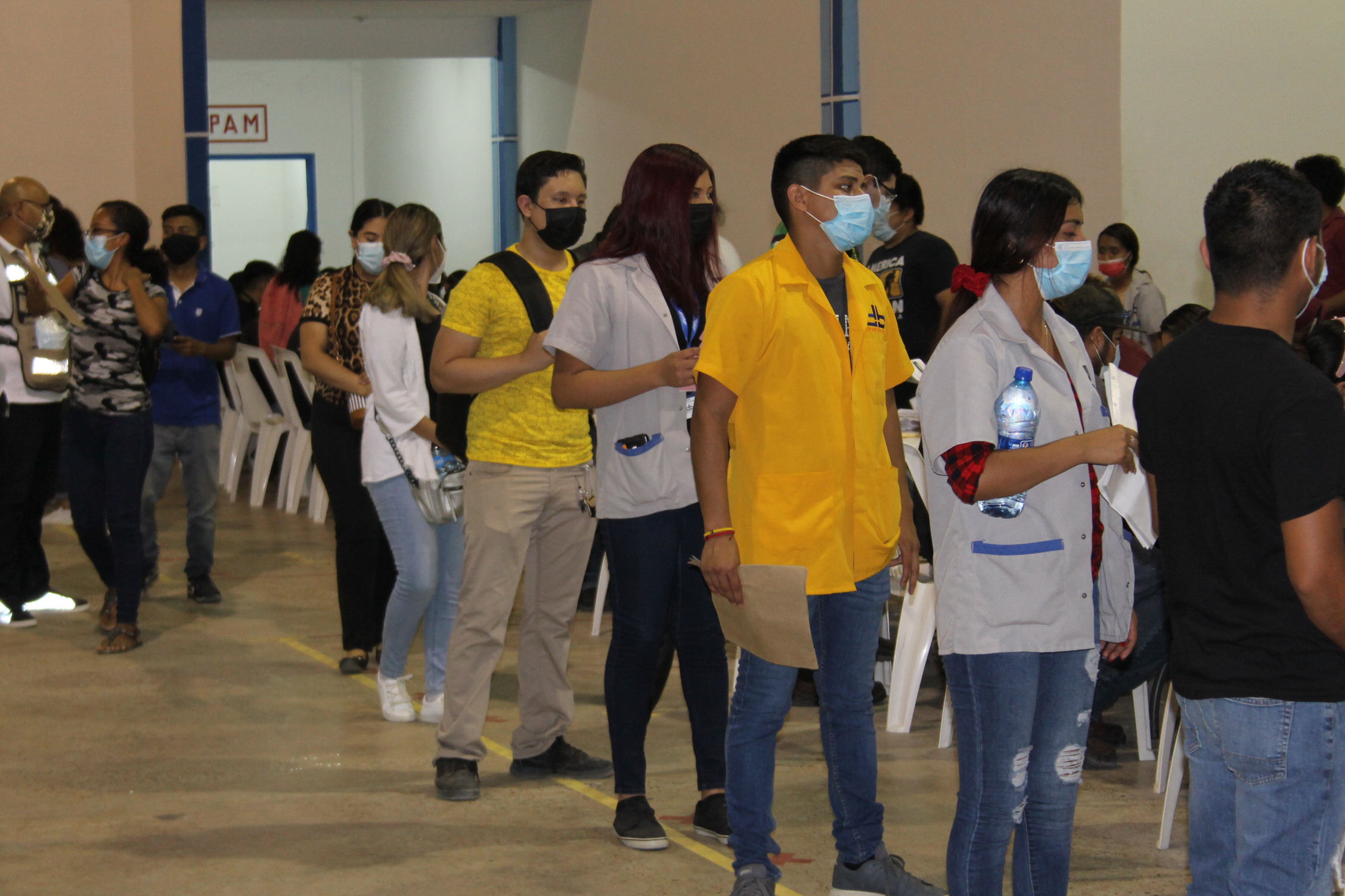 Los jóvenes obreros de maquilas, realizaron la misma fila de espera que el resto y pasaron a los puestos de vacunación, esperaron 20 minutos después de ser inoculados y posteriormente se marcharon como llegaron.