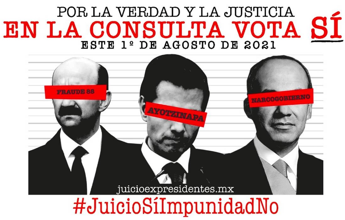 Es de mencionar que de acuerdo con el INE, la Consulta Popular 2021, que se llevará a cabo por petición del presidente Andrés Manuel López Obrador, busca que la ciudadanía muestre su aprobación o rechazo a que, con apego al marco legal, se realicen acciones que conduzcan al esclarecimiento de decisiones políticas tomadas en el pasado, por quienes ocuparon la Presidencia de la República desde 1988; es decir, Carlos Salinas de Gortari (1988-1994), Ernesto Zedillo Ponce de León (1994-2000), Vicente Fox Quezada (2000-2006), Felipe Calderón (2006-2012) y Enrique Peña Nieto (2012-2018).
