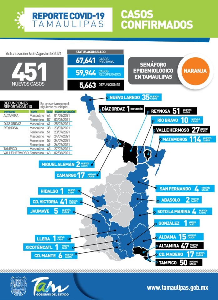 Ciudad Victoria, Tamaulipas.-Luego de advertir que el riesgo de contagio, de sufrir complicaciones graves y defunciones por #COVID19 sigue siendo elevado, la secretaria de Salud de Tamaulipas, Gloria Molina Gamboa reiteró su llamado a la población, a quienes ya han sido vacunados y en especial a los jóvenes, a quedarse en casa el mayor tiempo posible, evitar reuniones sociales y sitios aglomerados para cortar la cadena de transmisión del virus. Pidió no bajar la guardia y extremar las medidas preventivas universales como son el uso del cubrebocas en todos los espacios públicos, el lavado frecuente de manos y respetar la sana distancia.