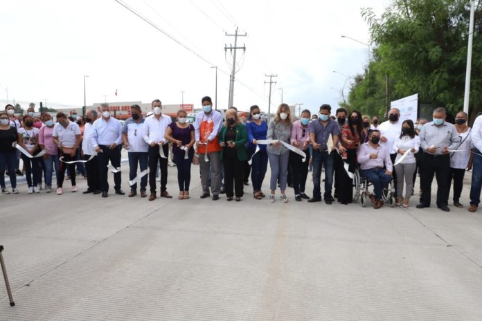 REYNOSA, TAM.- “Esta obra de pavimentación hidráulica beneficia a 1673 personas directamente y a un mundo indirectamente, es una inversión del Municipio de 9 Millones 310 Mil 601.00 Pesos, y en esta área hemos invertido 40 Millones 163 Mil 317.00 Pesos”, dijo la Alcaldesa Maki Ortiz, previo a la inauguración de la calle Fuente de Diana.