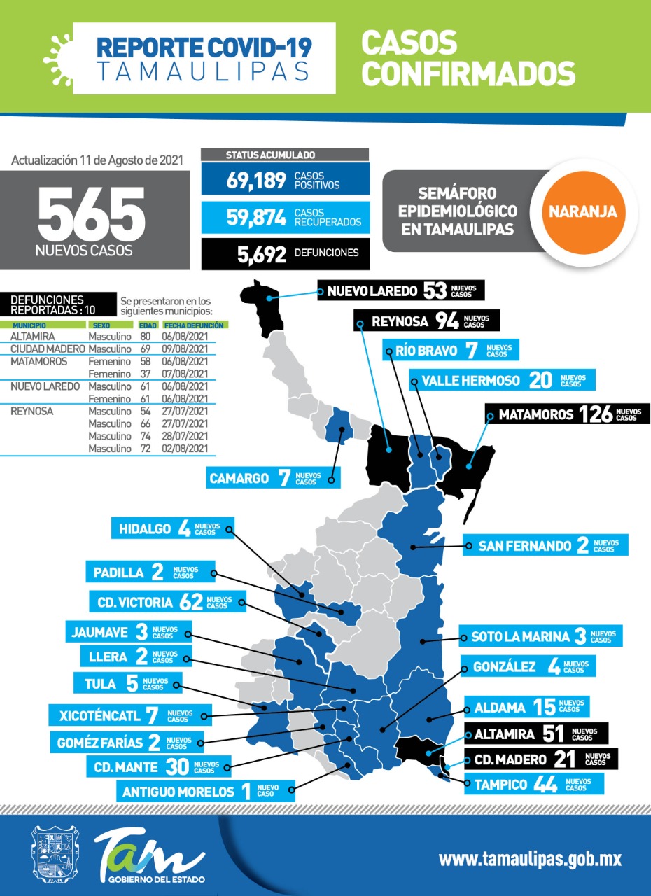 Registran 565 casos nuevos de Coronavirus en Tamaulipas