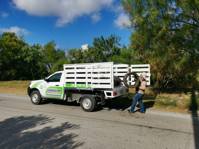 Camionetas para fumigación recolectan llantas tiradas en las calles