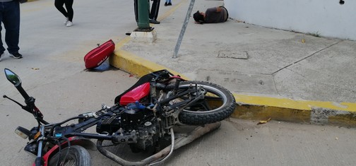 Altamira, Tamaulipas.-El exceso de velocidad y no respetar los señalamientos viales fueron las causas principales para que un motociclista sufriera aparatoso percance vial en la zona centro de Altamira el medio día de este lunes.